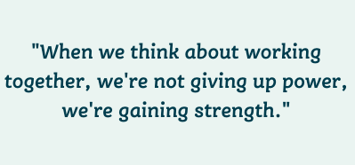 When we think about working together, we’re not giving up power, we’re gaining strength. This idea of us gaining strength together was really the way in which we’ve tried to approach everything that we’ve done.